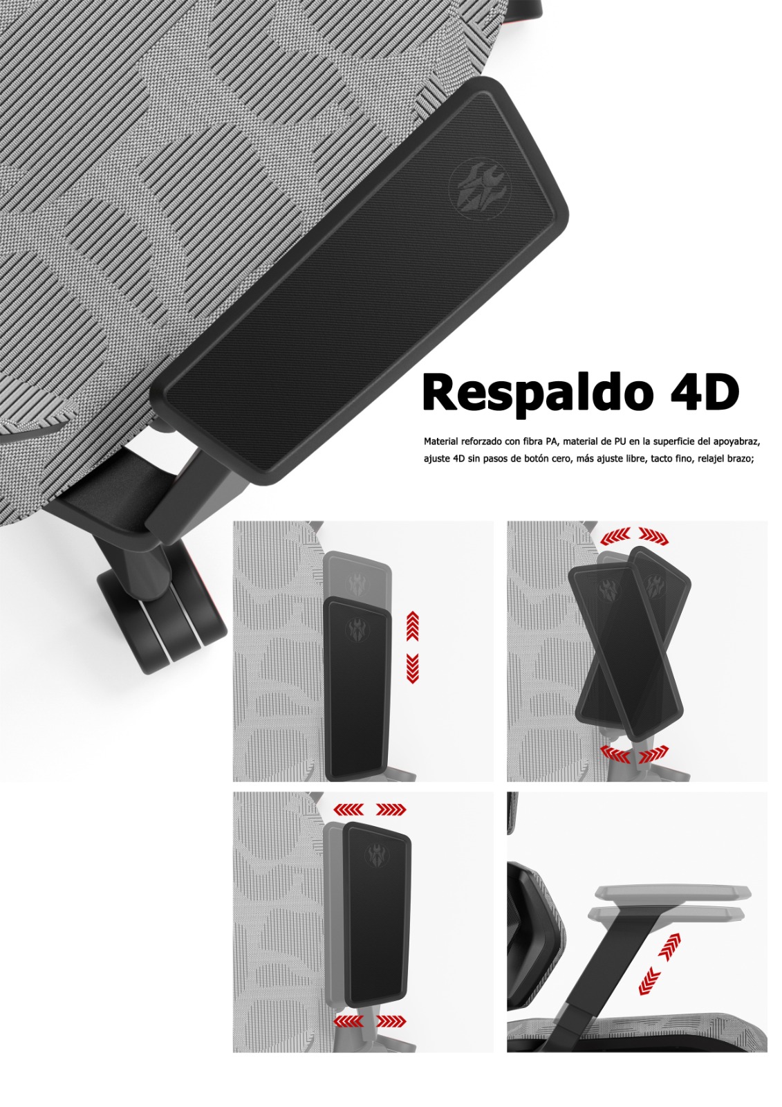 Reposabrazos: ajustable en 4DMecanismo 3 bloqueos