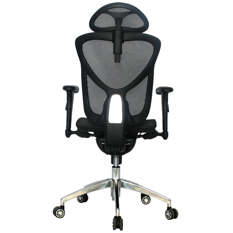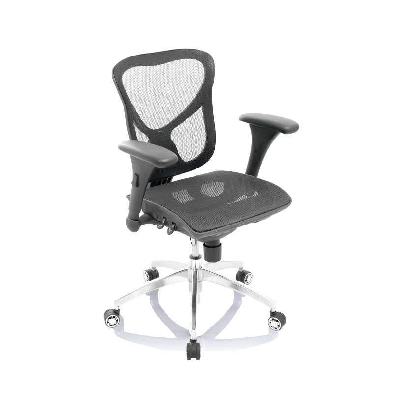 MARCO NEGRO, ESPALDAR EN MALLA NEGRA,ASIENTO EN PAÑO NEGRO MECANISMO SINCRO SLIDER, CUATRO BLOQUEOS, BRAZOS GRADUABLES, APOYO LUMBAR